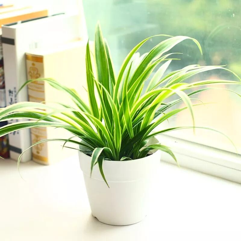 9、吊兰:吊兰好养,适应性强,是比较受欢迎的传统的屋家垂挂植物,四季常绿,吊兰能在微光下进行光合作用,可吸收室内的80%以上的有害气体,吸收甲醛能力比较强,装修完了,一定要养几盆,一般对经2盆吊兰等于10G碳的吸附量。