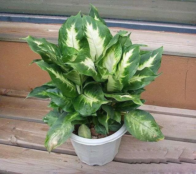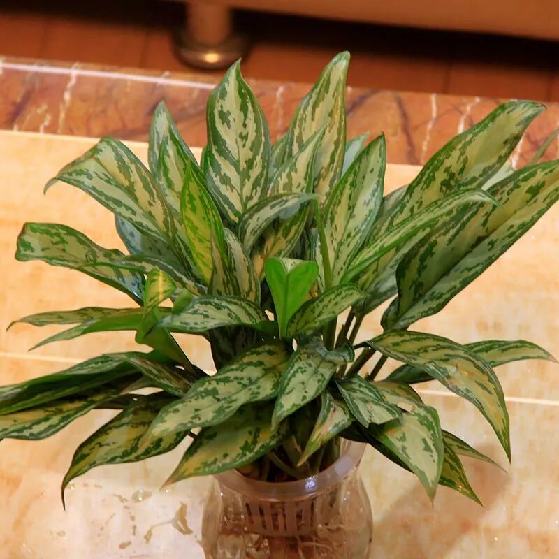 5、银后万年青:所属南星科,亮丝草属,为多年生草本植物,喜温暖半阴的环境,这个植物不耐寒,有吸收甲醛的作用,适合新房装修后,用作吸除有害甲醛 物质的作用。